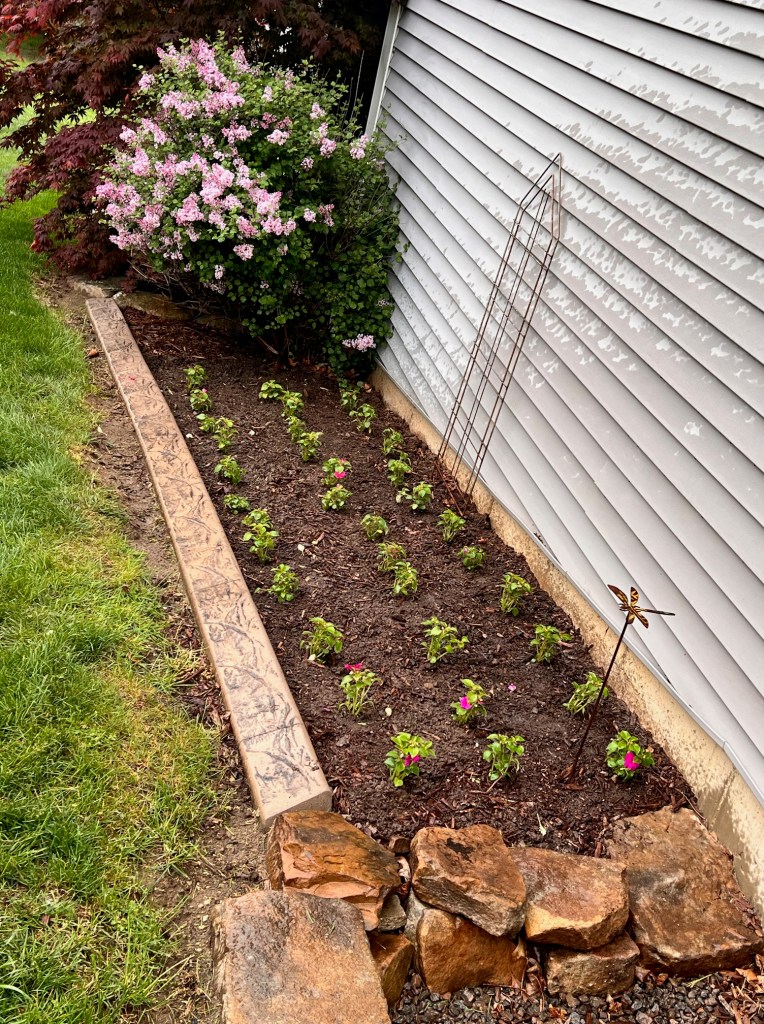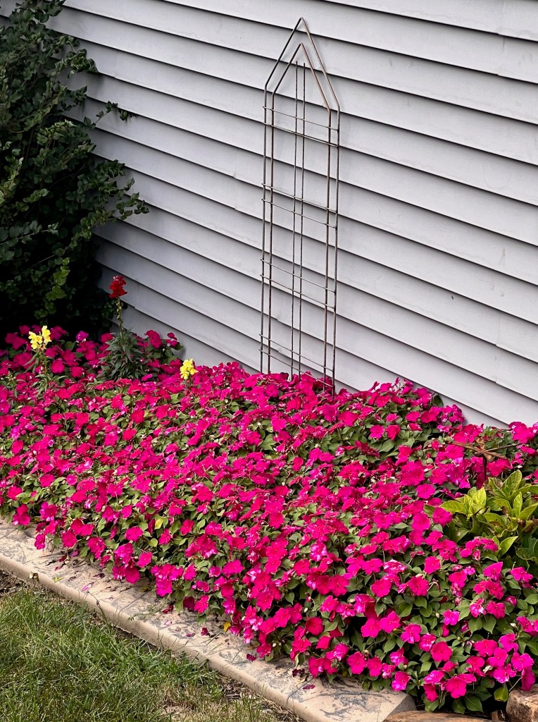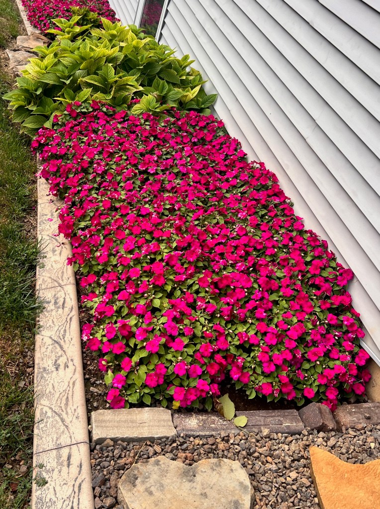 The following pictures reveal how I changed the landscape beds on the side of my house. Inpatients are NOT a flower I love, but they love this space, so I have learned to appreciate their beauty.